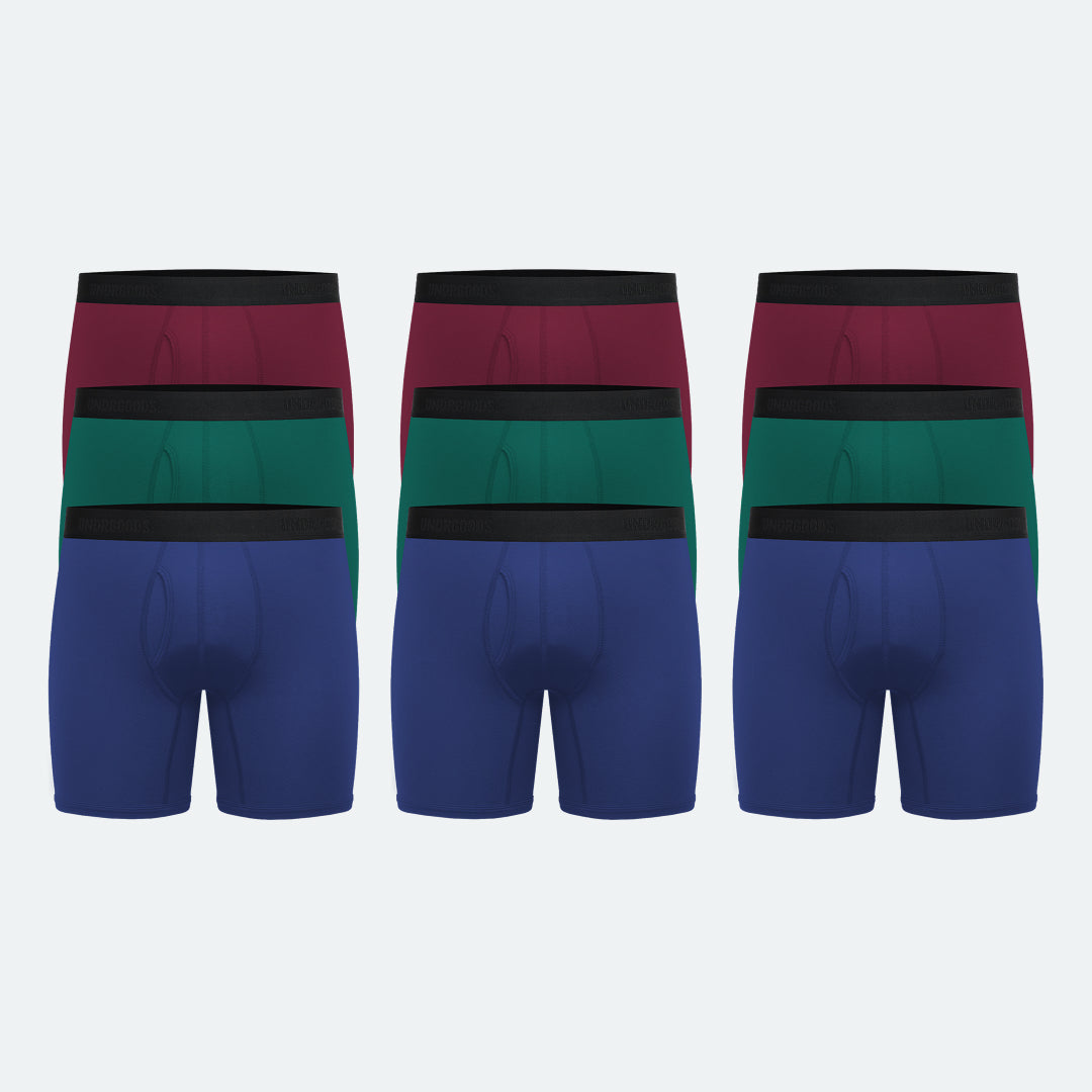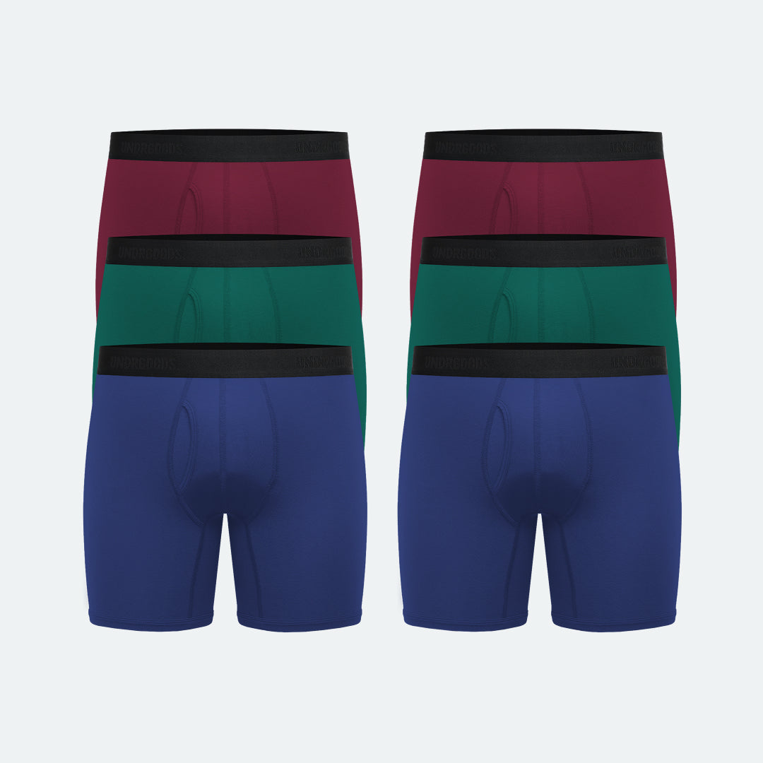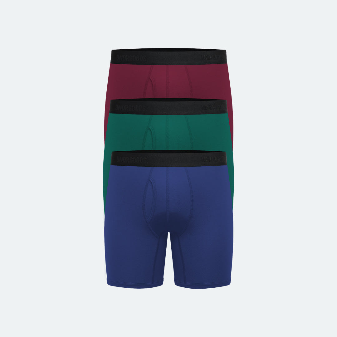 نفس البوكسر العادي، لكن مع أطراف أطول. مصمّم للناس اللّي تبي تقلّل من الاحتكاك عند الفخوذ، والناس اللّي يعجبها ستايل البوكسر الطويل، والناس ودّها بدفى زيادة وقت البرد،